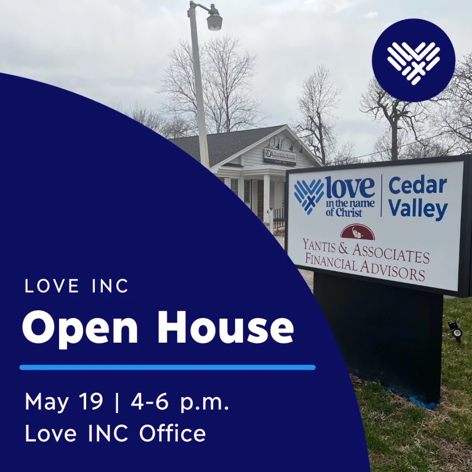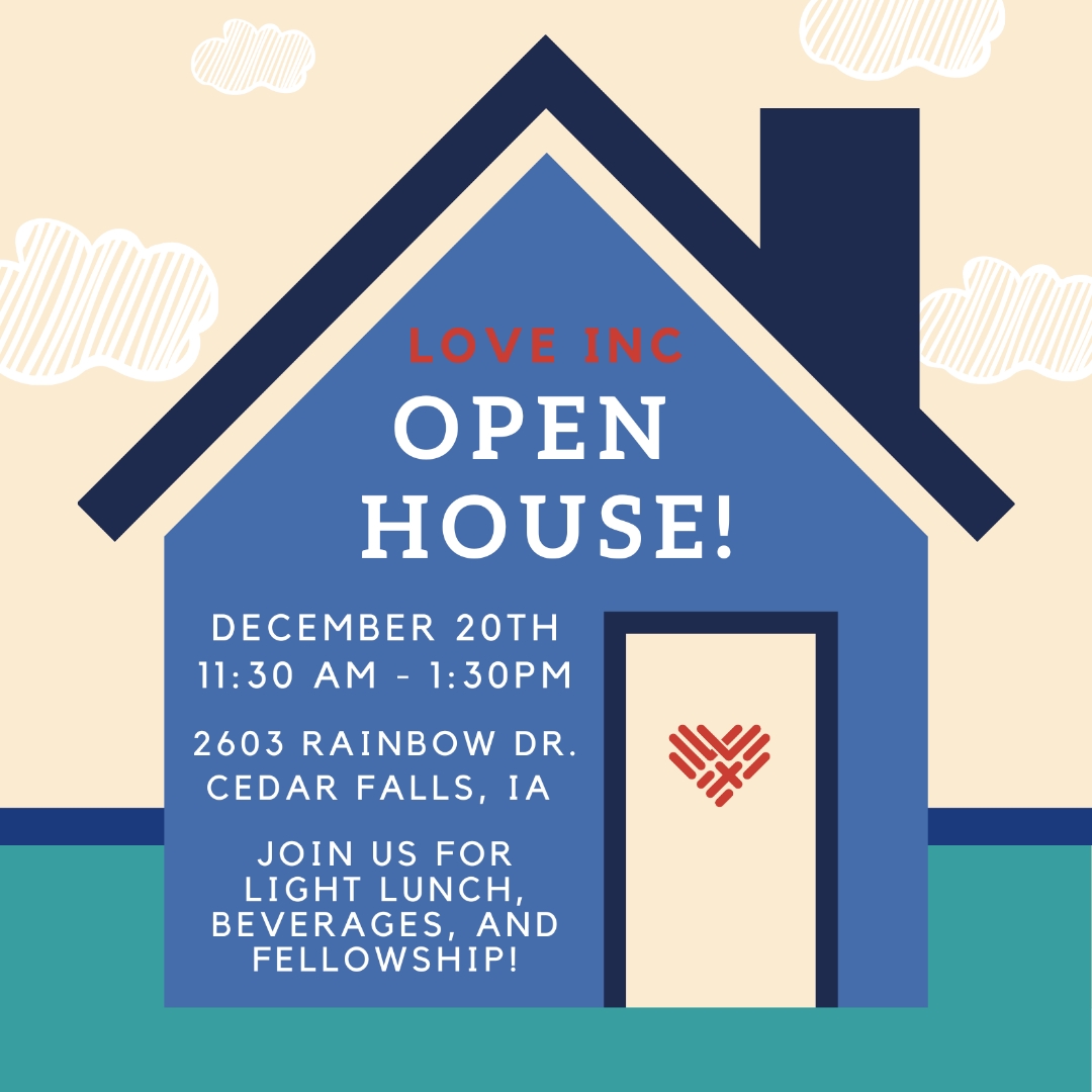This December, we invite you and your congregation to come meet Love INC staff and volunteers and learn more about how your church partners to bless the Cedar Valley. We are having an open house December 20th 11:30am-1:30pm at our office on Rainbow Drive! Light lunch and beverages served. Can't wait to meet you there!